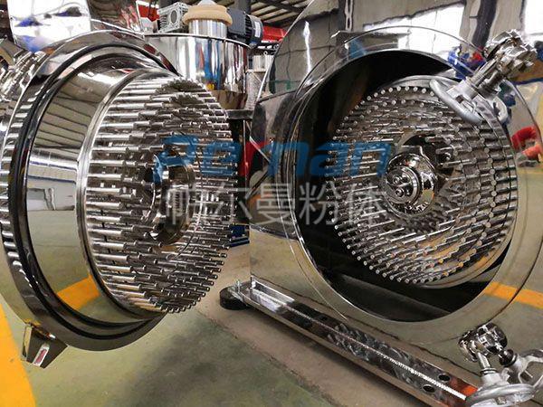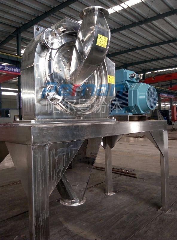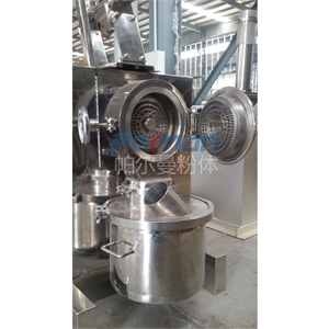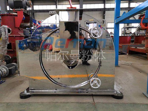 本機由機殼、機門、轉(zhuǎn)子、定子、主軸、主軸氣封裝置、加料裝置等零部件組成,機殼與機門之間裝有密封圈,防止粉塵泄漏,物料通過可調(diào)節(jié)振動加料器定量輸入粉碎腔,保證加料過程均勻與連續(xù)性。