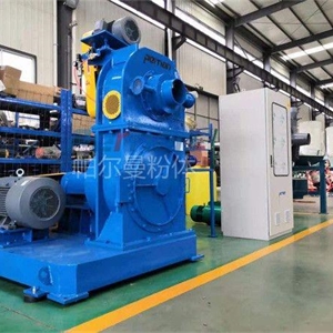 負壓空氣研磨系統的設備積垢問題經常是討論的焦點。設備的清洗,特別是輸送風機的清洗過于耗時。此外,在開機和關機過程中風機葉輪上的積垢還可能剝落,導致風機的振動及其運轉狀態的振蕩。因此可考慮由負壓流程改為正壓流程。在新的工作模式下風機安裝在分級磨之前,將工藝空氣壓入研磨系統。這種工作模式的優點是研磨后的碳酸氫鈉不通過風機運輸,完全避免了風機的積垢問題。此外風機的耗電也有所降低,使經營成本更低,但是對設備的密封性能提出了更高的考驗,無論是設備的設計結構、加工精度及配合都有嚴格的要求,設備的造價成本也會更高。