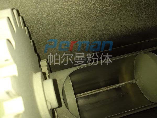 帕爾曼粉體設(shè)備設(shè)計生產(chǎn)的這種鋼絲繩管鏈輸送機包括自動箱(從動箱)、8齒鏈輪、電機減速機、帶盤片的運送鏈條,輸料管道。所述自動箱(從動箱)兩邊均設(shè)置有支管,支管與自動箱(從動箱)均相連通,8齒鏈輪裝置于自動箱(從動箱)內(nèi),所述輸料管形狀為曲折形,經(jīng)過法蘭銜接。輸料管兩端與自動箱(從動箱)兩邊設(shè)置的支管別離相連通地對應(yīng)銜接,運送鏈穿過輸料管和支管內(nèi)孔與自動鏈輪相傳動銜接。