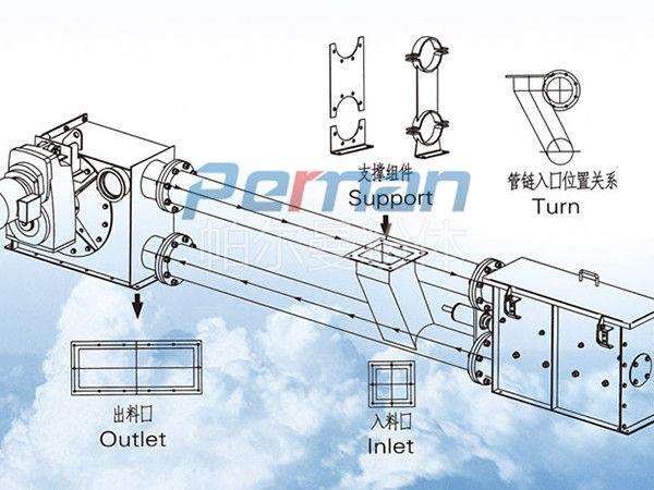 3、利用鏈板進(jìn)行的物料傳輸能夠有效的減少物料在管道內(nèi)部的堆積,避免物料殘留。
